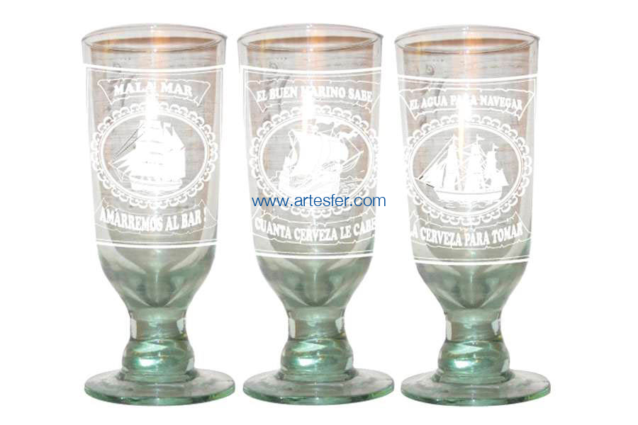 Surtido de 6 vasos de cerveza con inscripciones de divertidos proverbios marineros españoles :