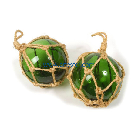 Boya de pesca verde. La boya de pesca era un antiguo flotador constituido de una bola de vidrio envuelta de una cuerda trenzada. Se utilizó hasta los años 50. Estos flotadores se fijaban en las redes de pesca para que se mantuvieran en la superficie mientras derivaban por la corriente.