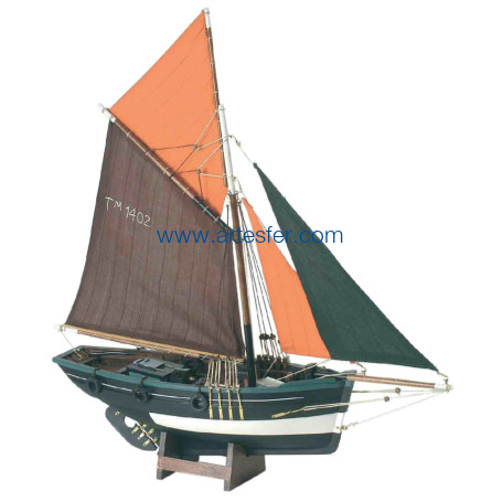 Maqueta decorativa realizada en madera, pintada y montada de forma artesanal. Mástil desmontado.