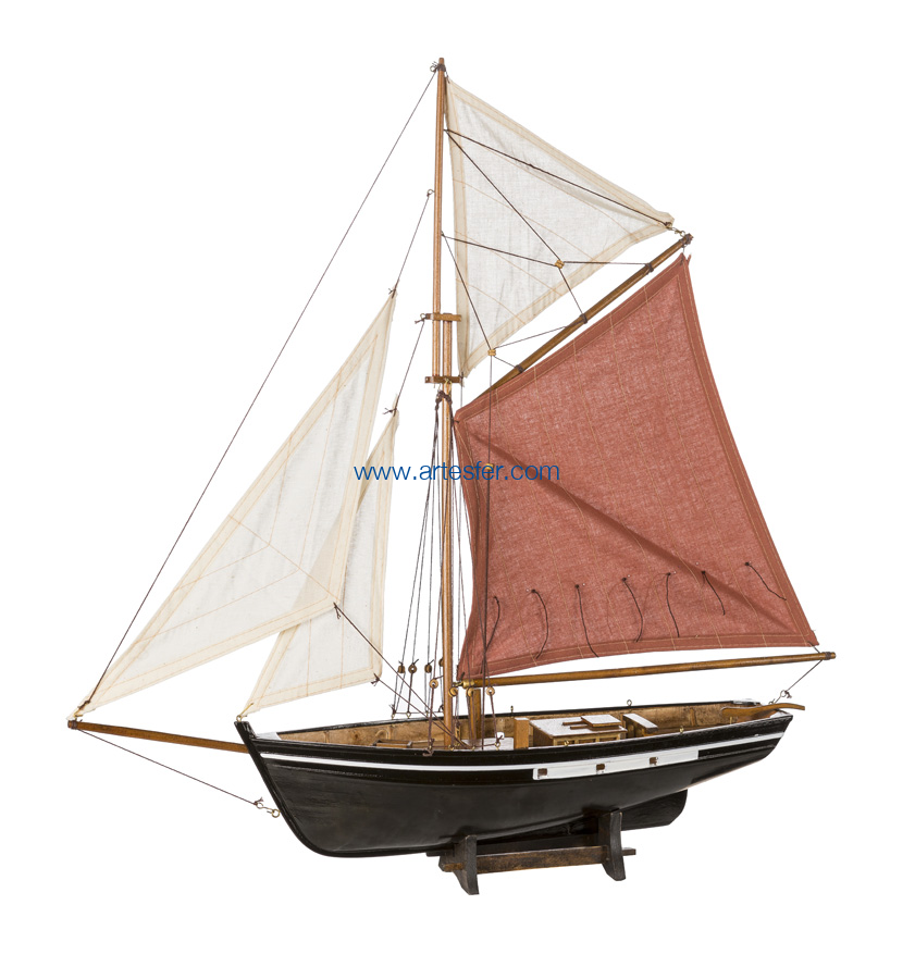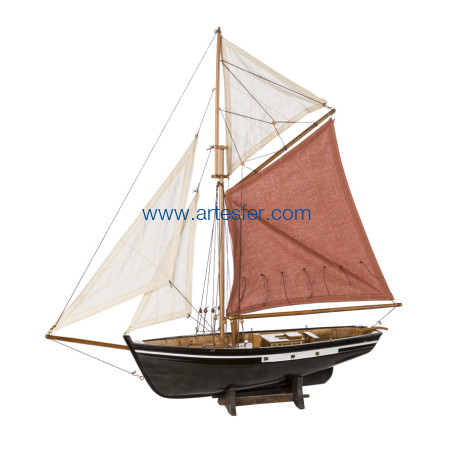 La maqueta decorativa de este barco está realizada en madera pintada y acabada de forma artesanal. Se presenta en una caja individual. El objeto ideal para dar un toque náutico elegante a cualquier espacio.