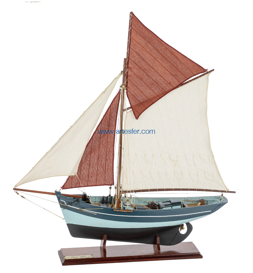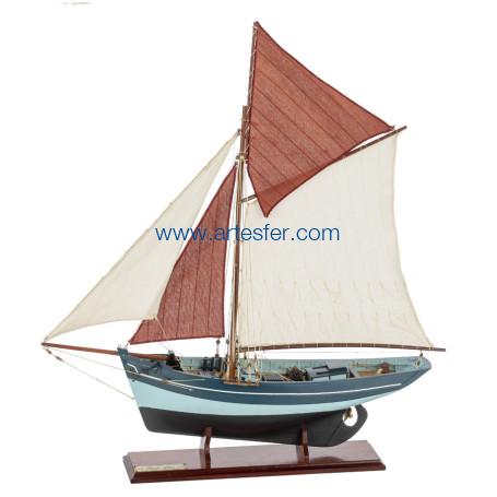 La maqueta decorativa de este barco está realizada en madera pintada y acabada de forma artesanal. Se presenta en una caja individual. El objeto ideal para dar un toque náutico elegante a cualquier espacio.