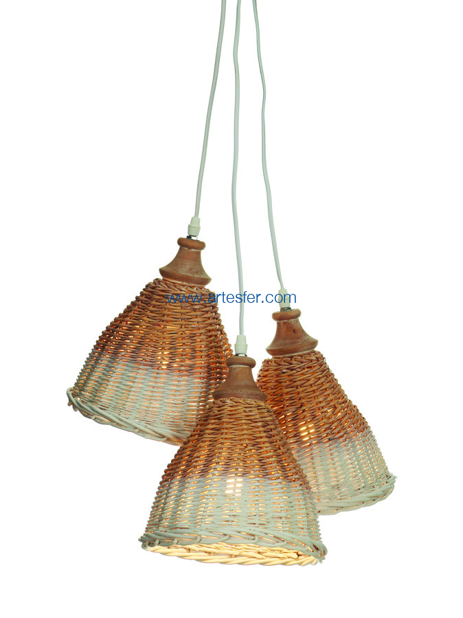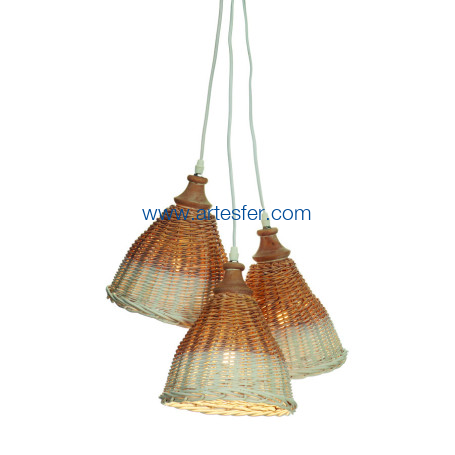 Tres lámparas de techo de mimbre
