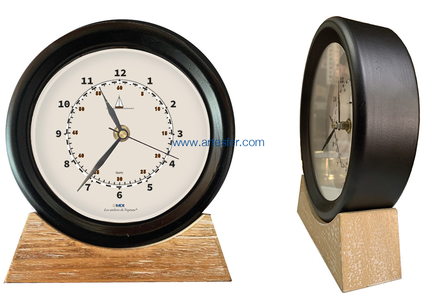 Estás aquí: Productos > Imex marine > Relojes horario > Reloj en metal con base de madera