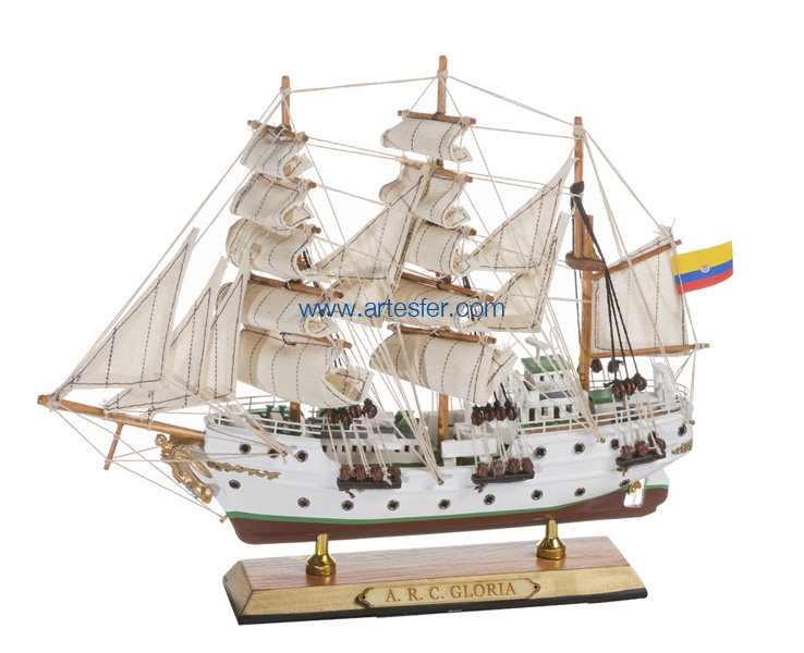 El ARC Gloria es un bergantín-barca de tres mástiles con casco de acero, construido en 1967 en Bilbao y en servicio el 7 de septiembre de 1968. Sirve como barco escuela y es el buque insignia de la Armada Nacional de Colombia. Con una longitud de 64,7 metros, una manga de 10,6 metros y un calado de 6,6 metros, cuenta con una superficie de vela de 1.400 m² y un motor diésel de 500 caballos de fuerza. Modelo decorativo fabricado en madera pintada y montado íntegramente de forma tradicional.