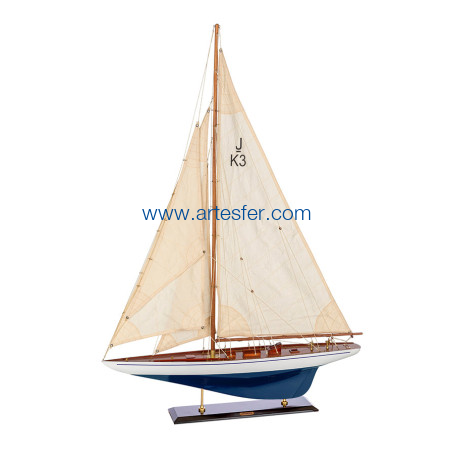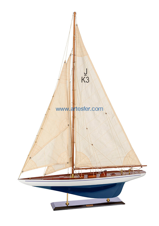 El Shamrock V es un yate británico de la clase J, diseñado en 1930 por Charles Ernest Nicholson para el quinto desafío de la Copa América de Sir Thomas Lipton. Construido en madera por Camper & Nicholson, mide 36,5 metros de largo y 6 metros de manga, con una superficie vélica de 700,5 m². Este yate fue el primero en construirse según la regla J-Class y es el único de esta clase que nunca ha sido abandonado. Maqueta fabricada en madera. Hecho artesanalmente. Embalaje: Mástil desmontado. Barco entregado en caja individual.