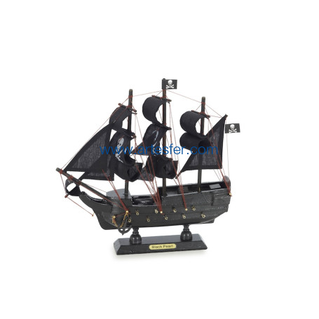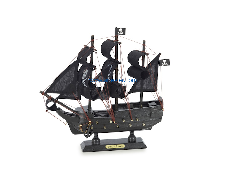 Maqueta inspirada del "Black Pearl" o "La perla negra", navío ficticio de tipo "indiaman" (finales del S XVIII-principios del S XIX) que aparece en las películas de aventuras de Pirata del Caribe y que se convierte en el escenario fascinante de numerosas intrigas, batallas de corsarios y piratas, búsquedas de tesoros, maldiciones, motines, traiciones y conquistas.