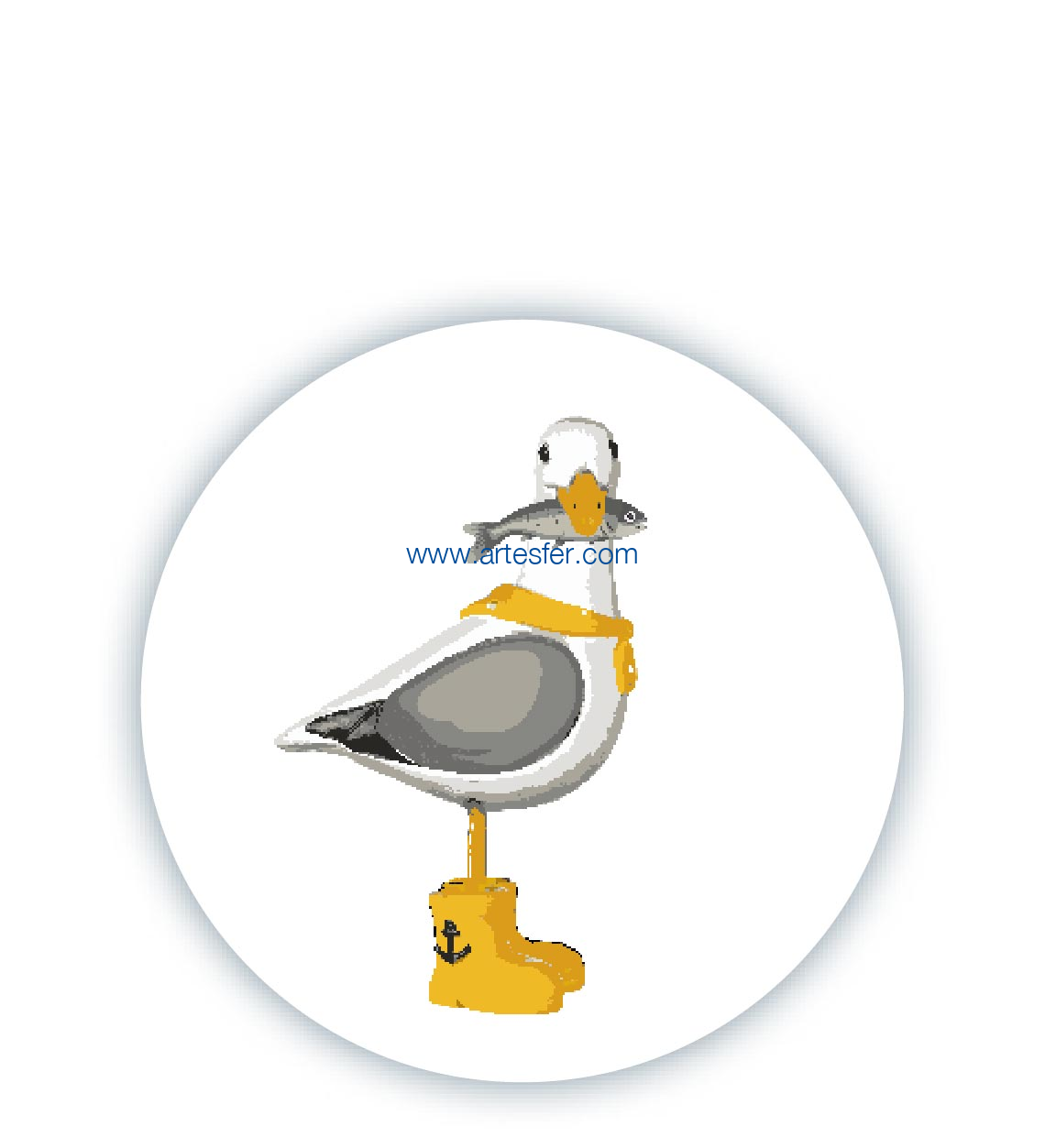 Estás aquí: Productos > Souvenir náuticos y bisutería > Imanes y otros pequeños objetos > Iman chapa 38mm "gaviota con un pez en el pico"