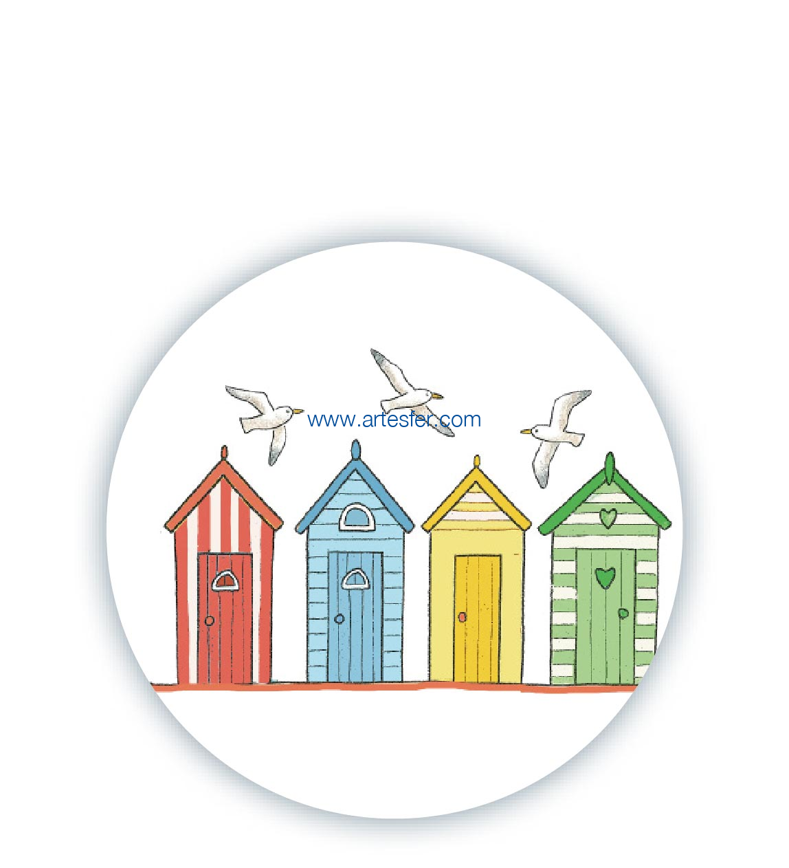 Estás aquí: Productos > Souvenir náuticos y bisutería > Imanes y otros pequeños objetos > Iman chapa 59mm "4 casetas de playa"