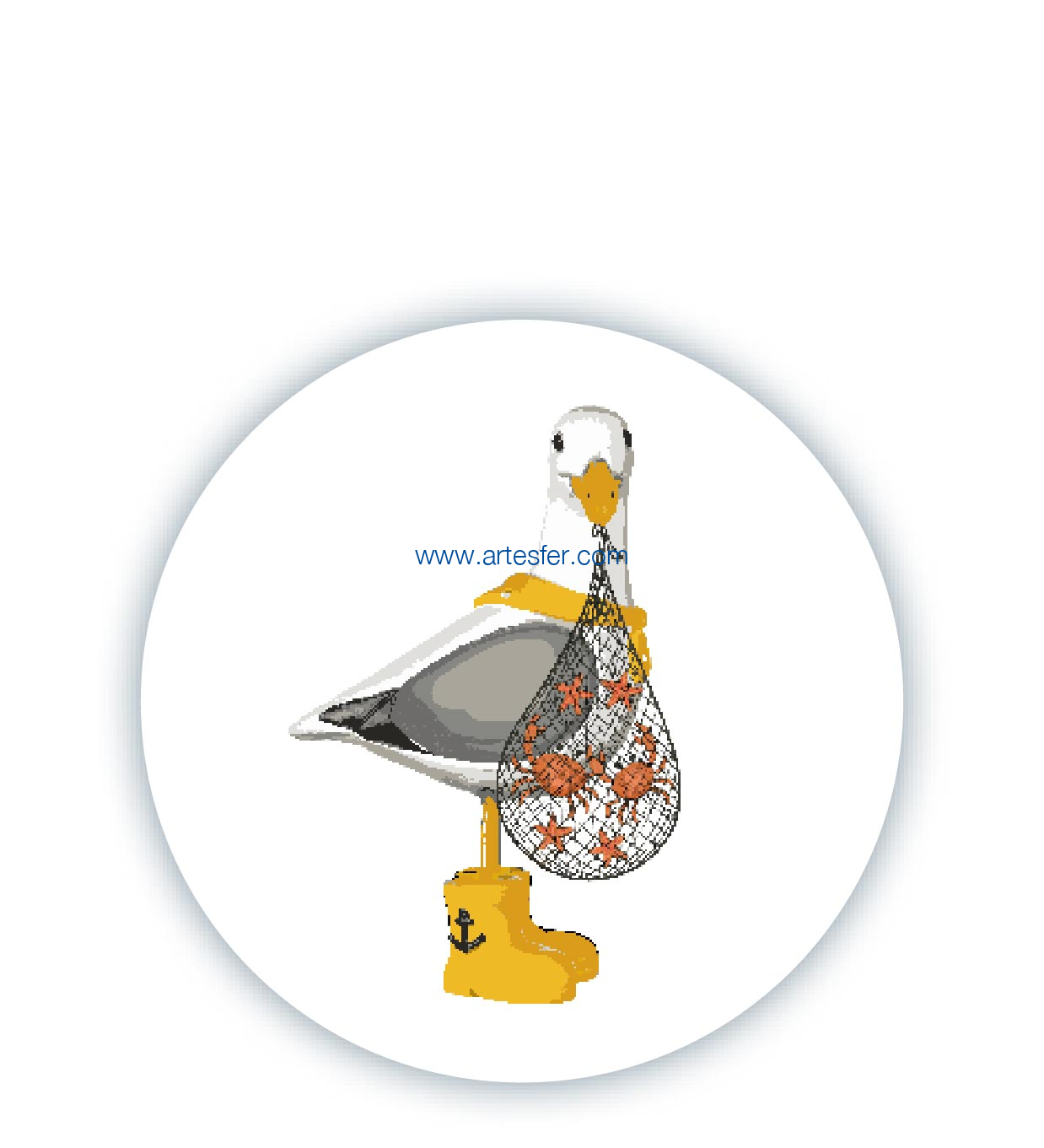Estás aquí: Productos > Souvenir náuticos y bisutería > Imanes y otros pequeños objetos > Iman chapa 59mm "gaviota con red de pesca en pico"