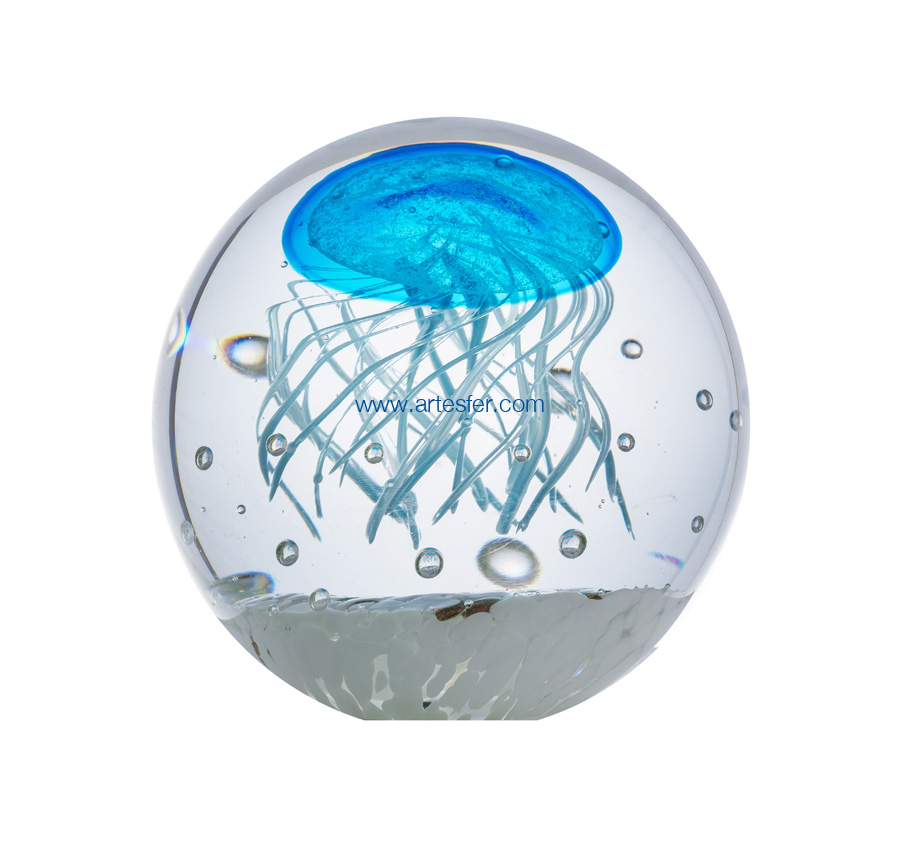 Medusa azul decorativa en cristal