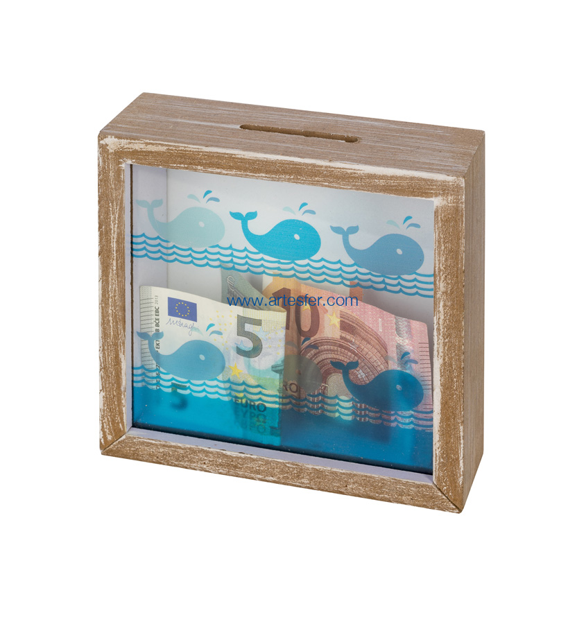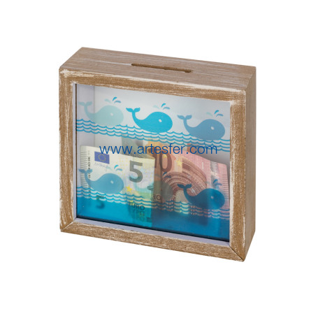 Estás aquí: Productos > Souvenir náuticos y bisutería > Imanes y otros pequeños objetos > Hucha de madera ballenas