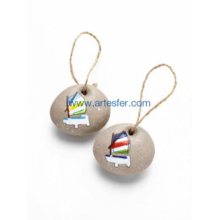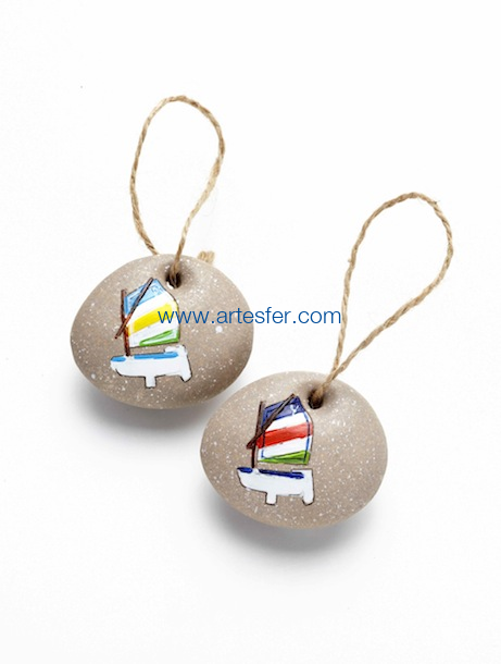 Estos colgantes guijarro pintados con unos bonitos veleros, podrán convertirse en un original llavero o en elemento decorativo suspendido en el pomo de una puerta. Una idea original que dará un toque marino en la casa.