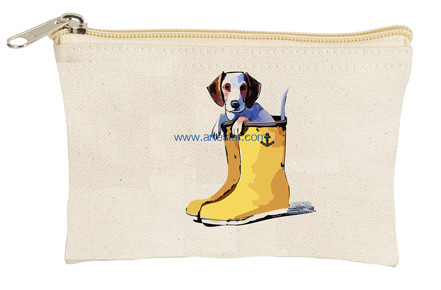 Estás aquí: Productos > Textil nautico > Bolsas y capazos > Monedero marino "perro dentro de botas de agua"