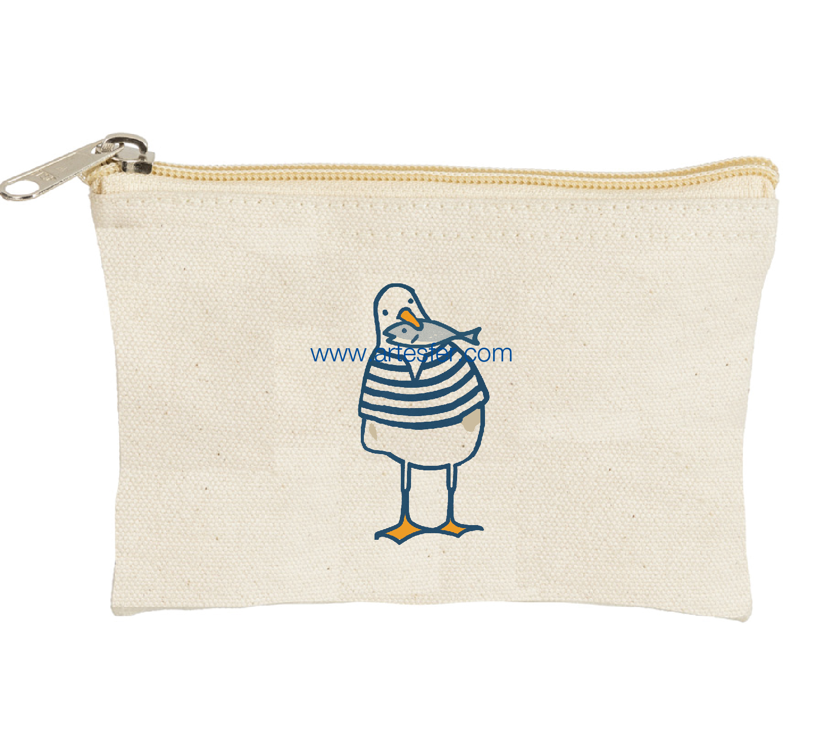 Estás aquí: Productos > Textil nautico > Bolsas y capazos > Monedero marino "gaviota con pez en el pico"