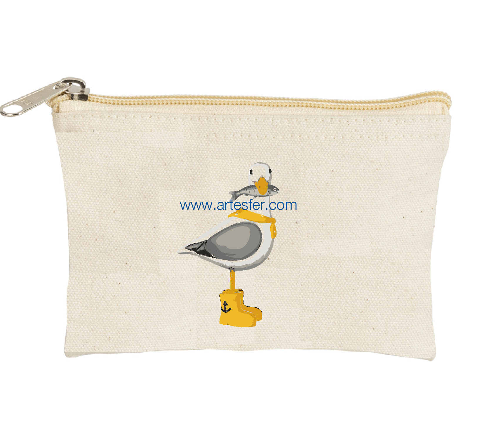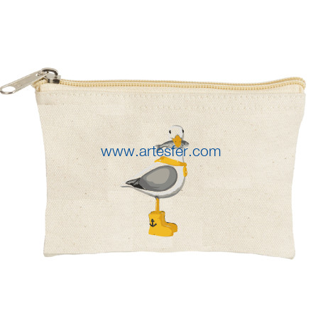 Estás aquí: Productos > Textil nautico > Bolsas y capazos > Monedero marino "gaviota con pez en el pico"