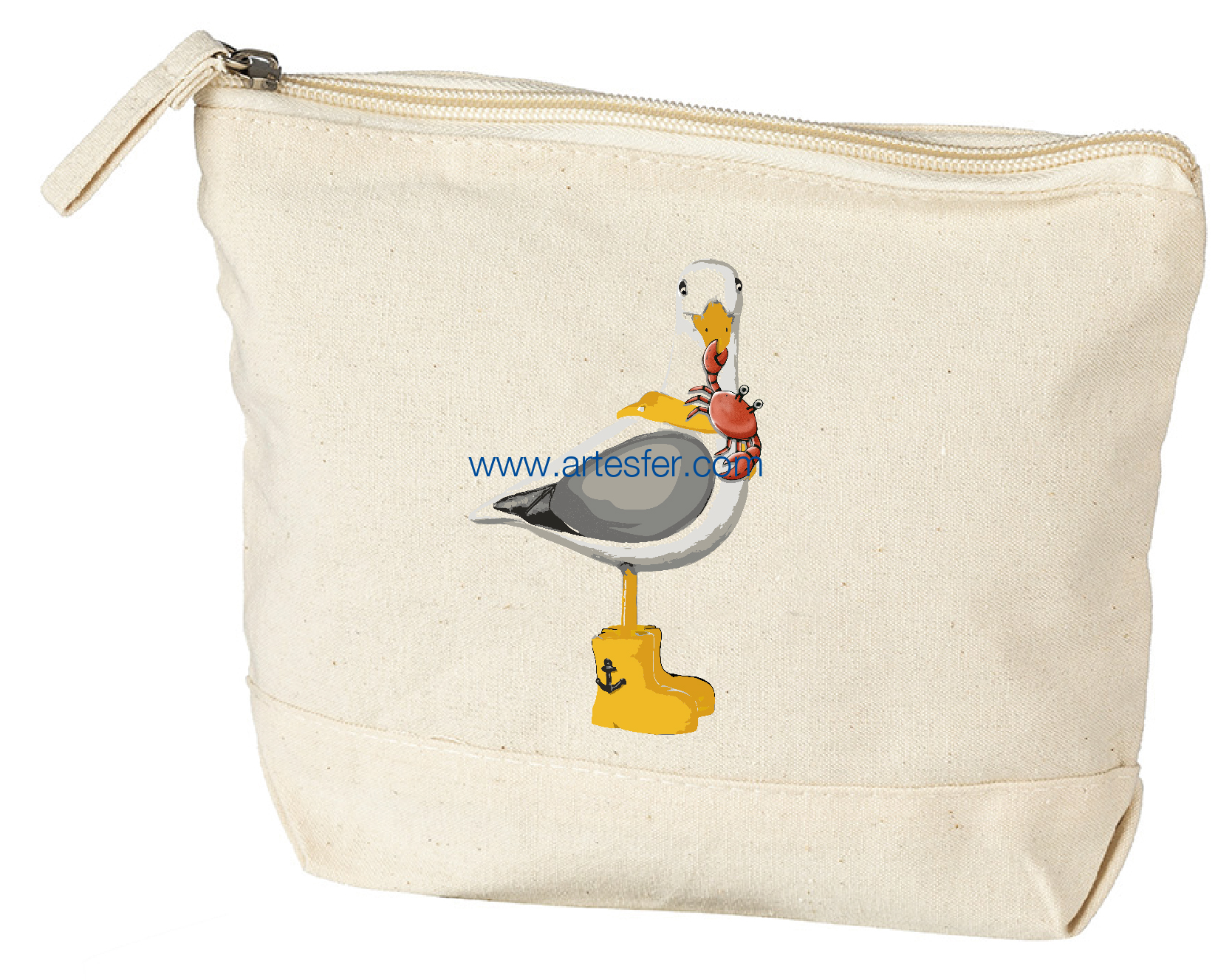 Estás aquí: Productos > Textil nautico > Bolsas y capazos > Neceser "gaviota con cangrejo en el pico"
