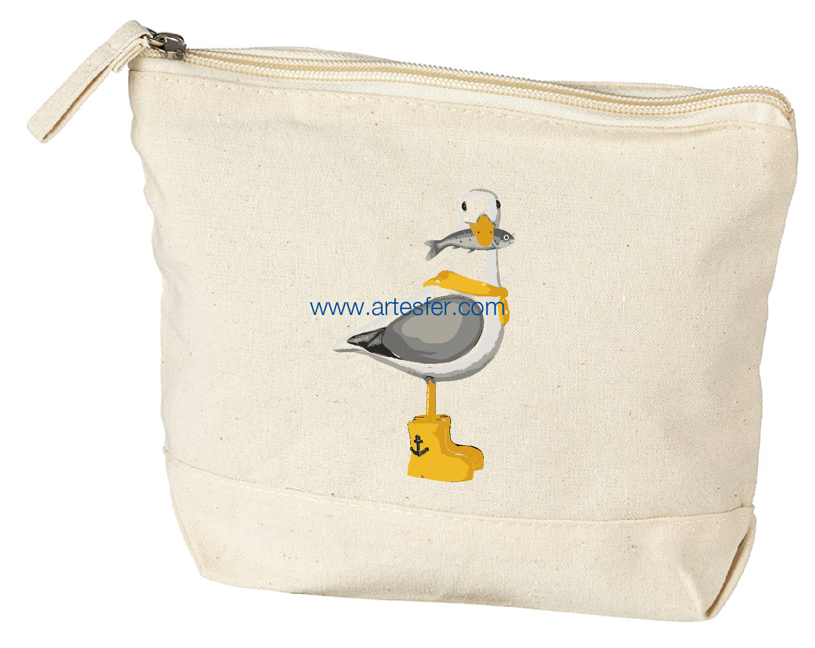 Estás aquí: Productos > Textil nautico > Bolsas y capazos > Neceser "gaviota con pez en el pico"