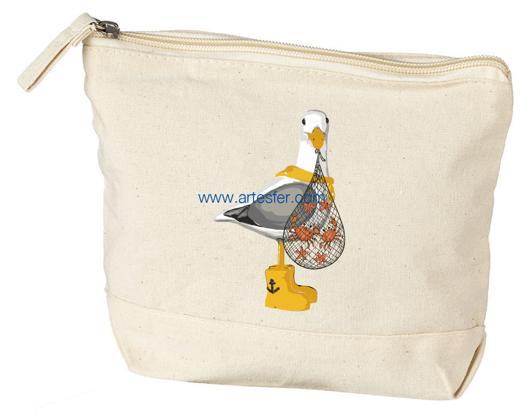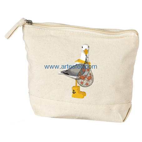 Estás aquí: Productos > Textil nautico > Bolsas y capazos > Neceser "gaviota con red de pesca en el pico"