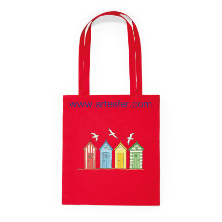Estás aquí: Productos > Textil nautico > Bolsas y capazos > Bolsa roja "4 casetas de platja"