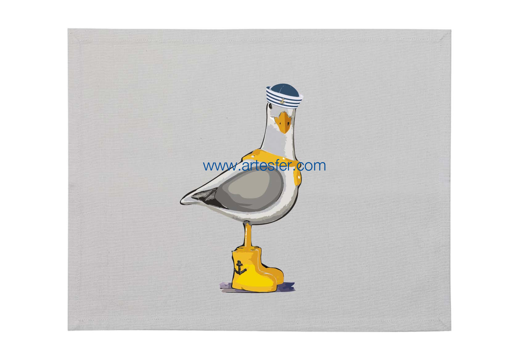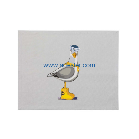 Estás aquí: Productos > Textil nautico > Textil para la casa > Mantel individual "gaviota con sombrero de grumete"