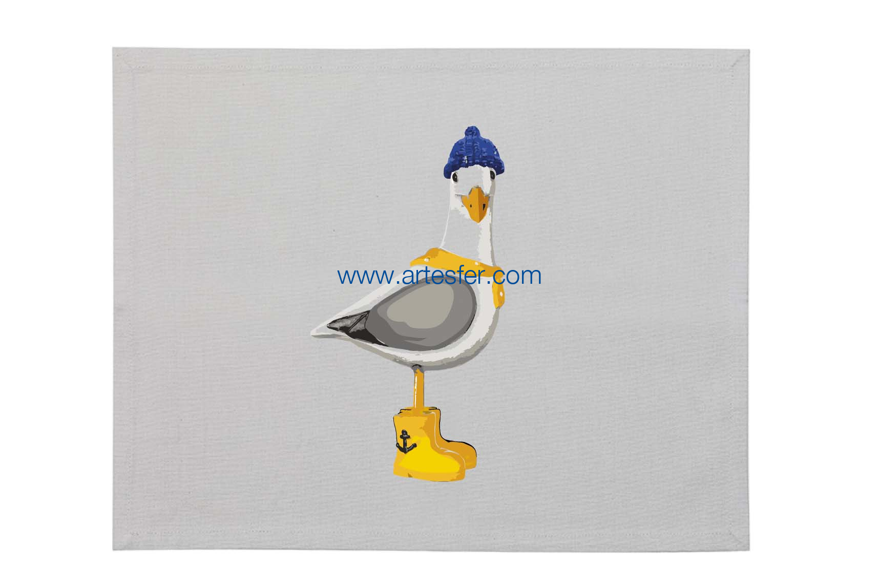 Estás aquí: Productos > Textil nautico > Textil para la casa > Mantel individual "gaviota con gorro"